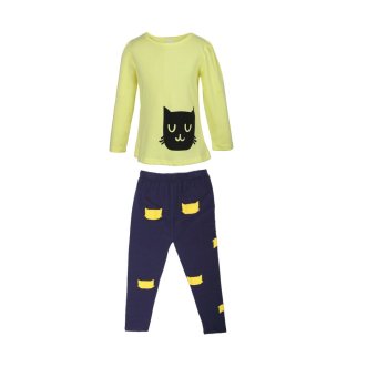 Nama Produk : Acecharming Waboats Winter Kids Girls Cartoon Printed Long Sleeve Top Pant (Yellow) (Intl)
