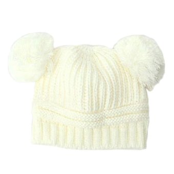 Nama Produk :Aukey Baby Dual Ball Toddler Wool Sweater Beanie Cap White