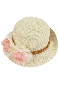 Nama Produk :Aukey Kids Flower Corchet Knit Hat Sun Beanie (Apricot)