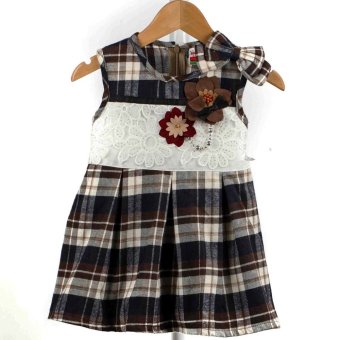 Nama Produk : Girl Plaid Dress with Flowers and Ribbon - Coklat